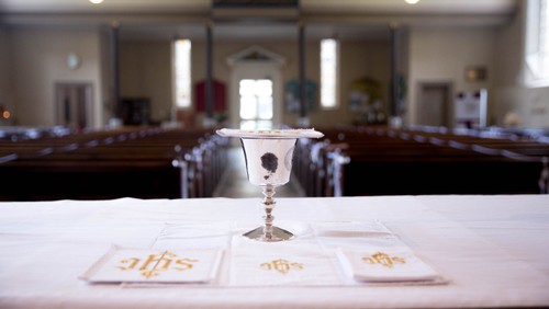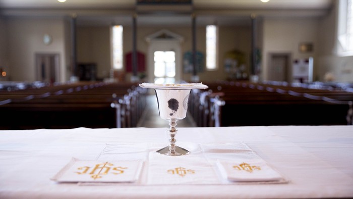 A celebration of Holy Communion with full choir and organ, followed by the stripping of the altars